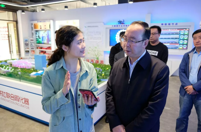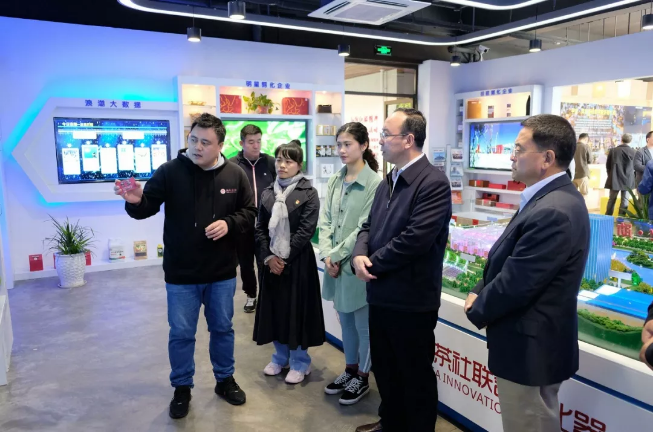 在凤岐孵化器团支部书记夏璐的讲解引导下,赵永祥一行先后参观了凤岐茶社大数据农业展厅、智慧展厅以及乡村振兴体验馆,对孵化涉农企业、助力乡村振兴的凤岐模式进行深入了解。凤岐茶社副总裁郭瑞陪同。